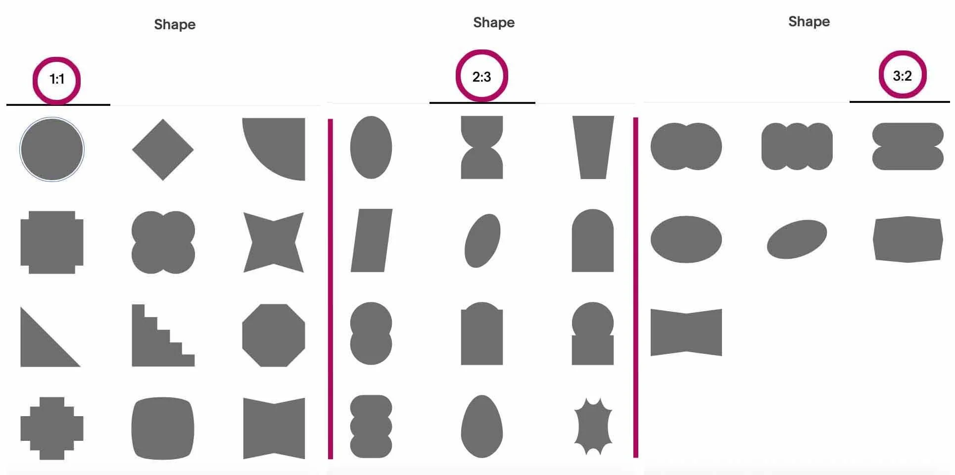 The 2:3 aspect ratio shapes require a vertical image where the width is 2/3 the size of the height, such as 1000 pixels x 1500 pixels